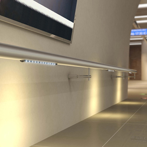 SWARORAIL is an integrated handrail lighting system providing illumination and marking as well as haptic guidance on escape routes and in danger zones. Areas of application are road- and railway tunnels, industrial objects, bridges, pedestrian passages, stairways, ramps etc.